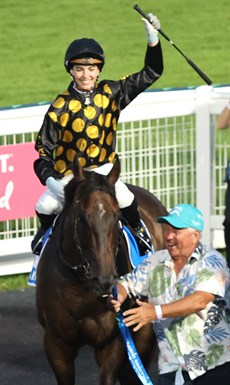 Jones’ last winner for Gollan came aboard Now Is The Hour in the Magic Millions Rising Stars 3Y0 and 4Y0 colts, geldings and entires contest at the Gold Coast … after which Jones made a point of declaring the black, gold spots and black sleeves were her favourite colours … with that statement having as much to do with her association with Zarastro, whose carries the same set of colours, as it has does with Now Is The Hour.