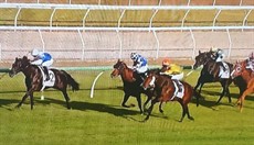 With the speed on, Lerena held his position going down the back straight, but then had to ride harder again approaching the home turn, and Piston Rebel responded to the rider’s urging, quickly threading a path up into fourth, then third place on straightening … and he was now in full cry.
